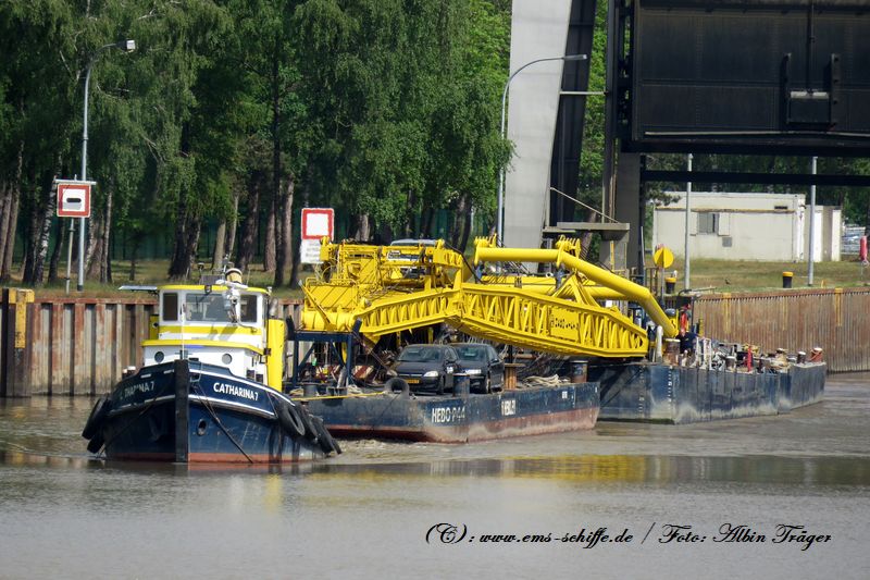 HEBO-LIFT 5 kann bis zu 160 t heben. Auf dem Transport ist er mit Pontos 105 m lang. Seine Seitenpontons führt er dann am Heck mit. | ![]() | |