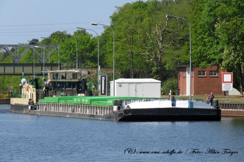Die Frachtbarge ZP-O-8002 auf dem Küstenkanal Schleuse Dörpen