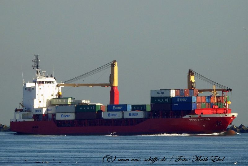 ms REYKJAFOSS einlaufend Rotterdam im Juni 2015. Das Schiff kann 712 TEU stauen. | ![]() | |