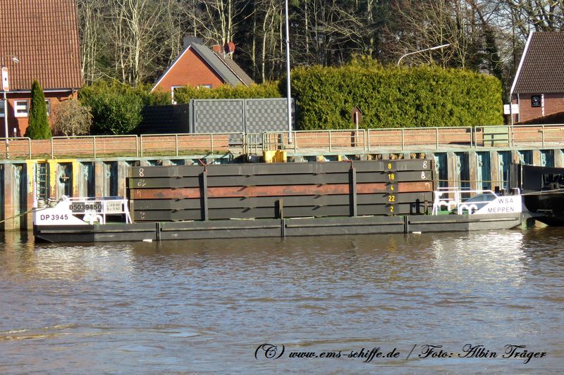 Der Decksprahm DP 3945 an der Schleuse in Herbrum liegend.