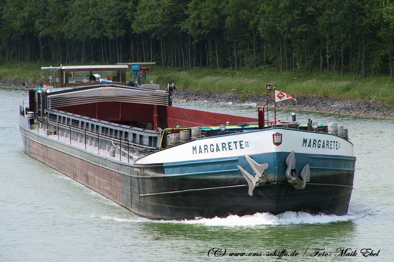 ms MARGARETE II auf dem MLK bei Hille am 31.Mai 2005. Verbleib: 2014 Abbruch in Bremen