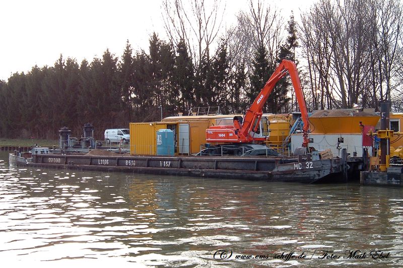Die Schute MC 32 auf dem MLK bei Hille am 06.Januar 2003