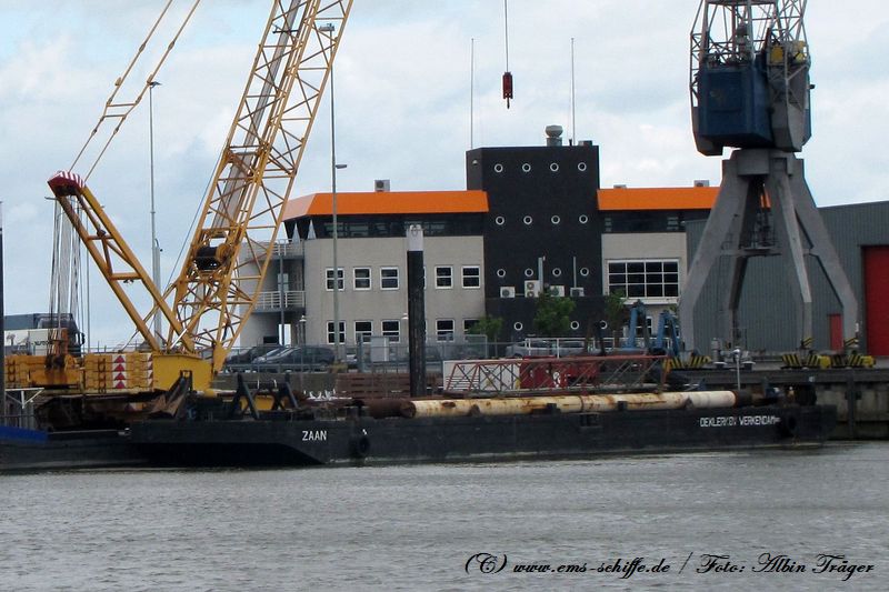 Der Arbeitsponton ZAAN in Delfzijl am 01.06.2012.