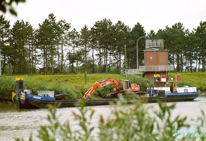ms REIGER ein Bagger bzw. Arbeitsschiff auf der Ems vor Herbrum im September 2007