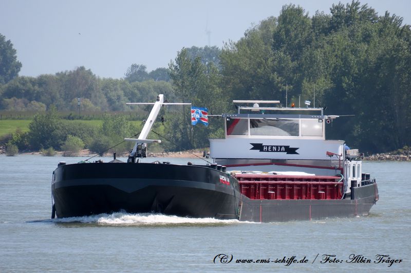 ms HENJA passiert im Mai 2023 Xanten zu Tal. Das Schiff erhielt 2013 einen neuen Motor. | ![]() | |