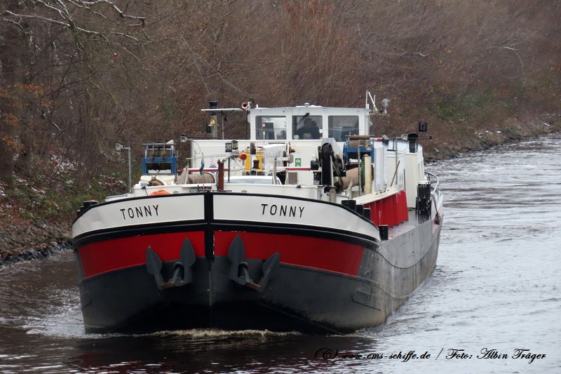 ms TONNY im Dezember 2023 auf dem Küstenkanal. Das Schiff ist zum Bodenuntersuchungsschiff umgebaut. | ![]() | |