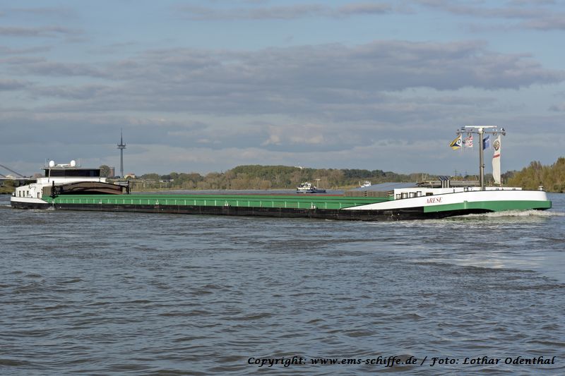 ms ARESE am 04.Oktober 2024 in Wesel-Büderich zu Berg. Das Schiff kann 264 TEU stauen. | ![]() | |
