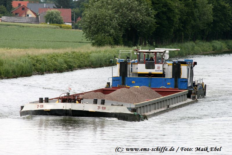 Der gsl ZF-908 geschoben von ms FABICO-1 auf dem MLK am 13.Juni 2008 | ![]() | |