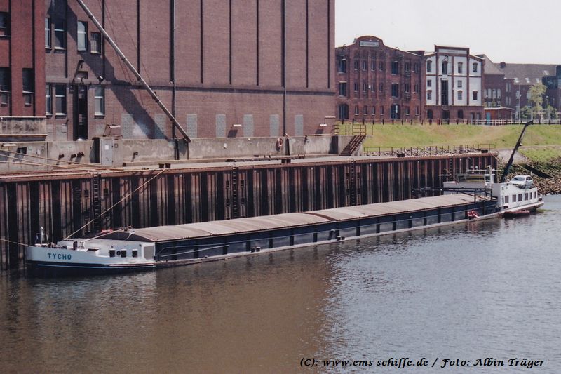 ms TYCHO in 2005 in Bremen an der Rolandmühle im Holz- und Fabrikenhafen (Bild 1) sowie am 15.Februar 2008 auf dem MLK. | ![]() | |