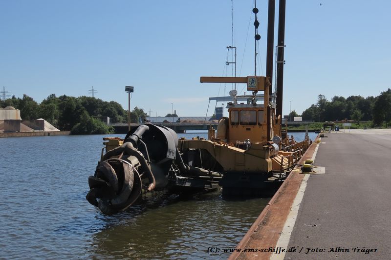 Der Schneidkopfbagger ms PIRAT IX am 30.Juni 2025 im Papenburger Hafen. | ![]() | |