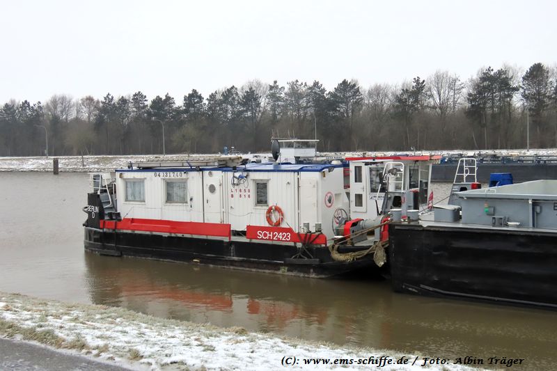 Mms SCH 2423 am 05.Februar 2026 in Herbrum mit der Frachtbarge RHENUS BERLIN 1 (03150696) | ![]() | |