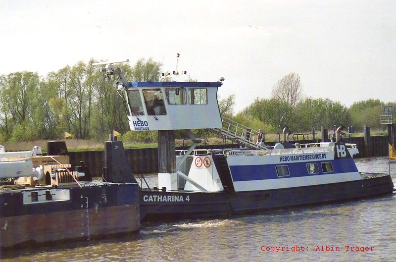 Das Schubschiff CATHARINA 4 mit dem Ponton HEBO P-6 im Mai 2006 bei Herbrum. | ![]() | |