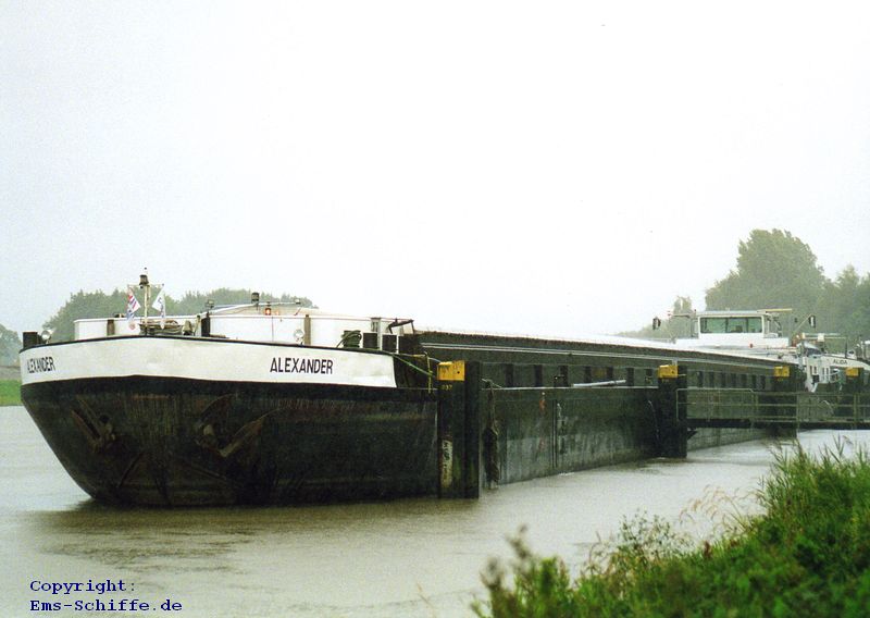 ms ALEXANDER wartet am 21.August 2008 in Herbrum auf Schleusung. Das Schiff wurde bei Scheepswerf St. Barbara in Maasmechelen verlängert. | ![]() | |