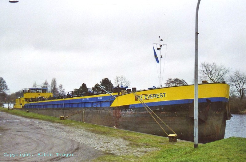 mt PIZ EVEREST im Januar 2006 im Oberwasser der Schleuse "Oldenburg".Verbleib: 2008 SALUTE (NL) - 2016 DETERMINATION (NL) - 2022 RELATIONSHIP IV (D) | ![]() | |