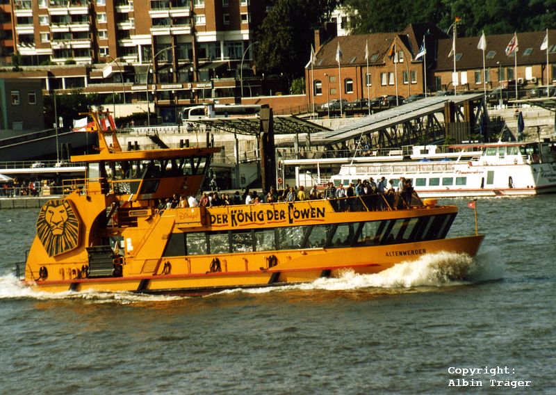 Die Hadag Fähre ms ALTENWERDER in Bemalung "König der Löwen" im September 2008 in Hamburg | ![]() | |