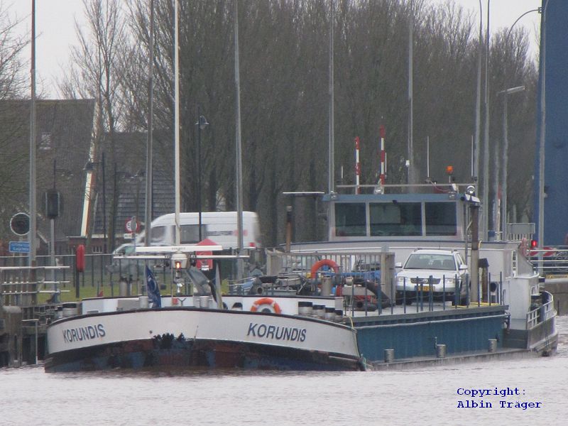 mt KORUNDIS verlässt am 20.Februar 2009 die Schleuse "Gaarkeuken". Das Schiff wurde als Frachtbarge gebaut später zum MGS und dann zum MTS umgebaut. | ![]() | |