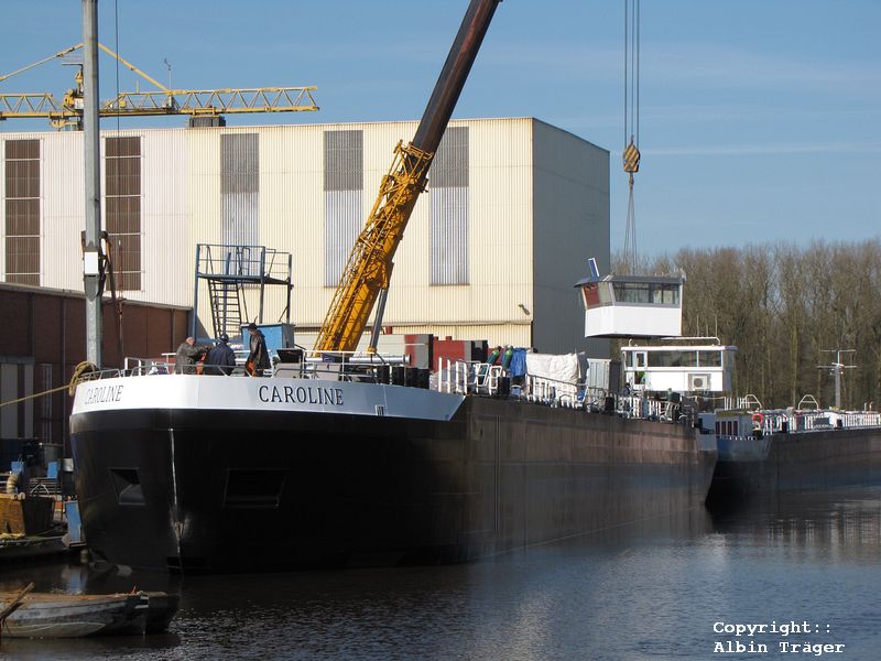 mt CAROLINE auf der Werft in Groningen. Das Deckshaus wird gerade montiert(1+2) Auf der Ems bei Lehe (3) und in Herbrum (4) | ![]() | |