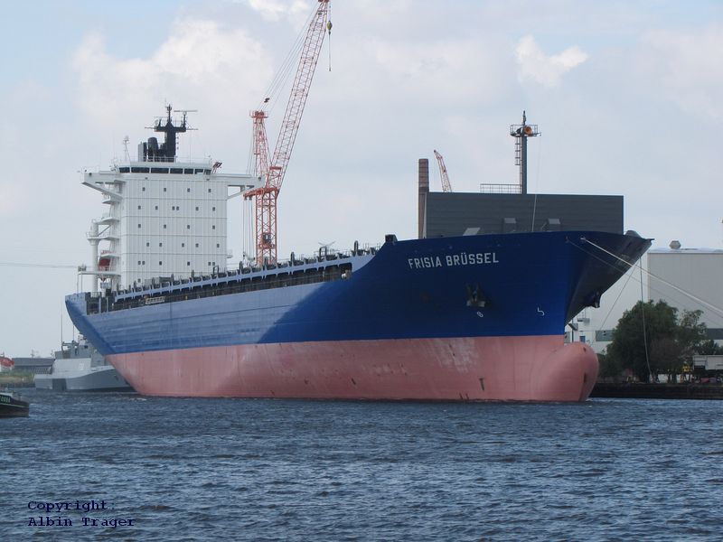 ms FRISIA BRÜSSEL ein Neubau für max. 3.414 TEU als Auflieger an der Werft in Emden. | ![]() | |