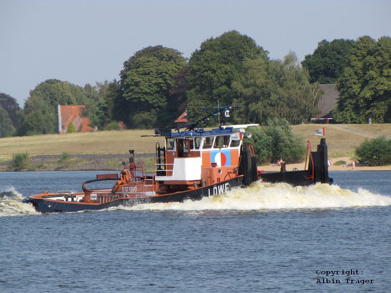 Das Schubboot ms LÖWE in voller Fahrt bei Altengamme am 20.August 2009. | ![]() | |