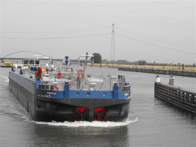 Die Tankbarge CHEMGAS 20 im Juli 2010 in der Schleuse Hansweert (Fotos: Paul Philipse) | ![]() | |