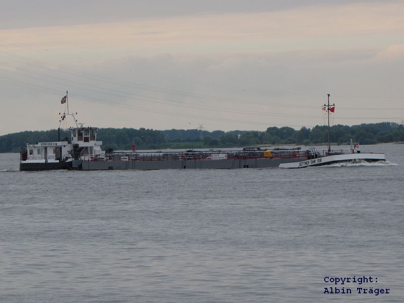 Die Tankbarge DETTMER TANK 108 auf der Elbe gechoben von DETTMER SCHUB 124 | ![]() | |