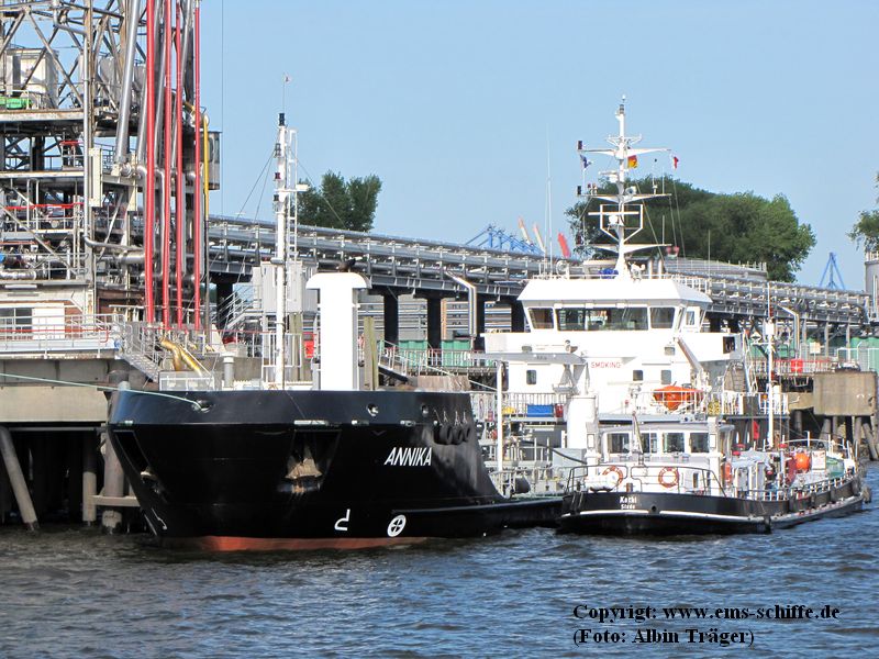 Der Tanker ms ANNIKA der Fa. Hans Rinck in HH-Finkenwerder. ms ANNIKA ist ebenfalls als Seeschiff mit der IMO-Nr.: 9628489 klassifiziert. | ![]() | |