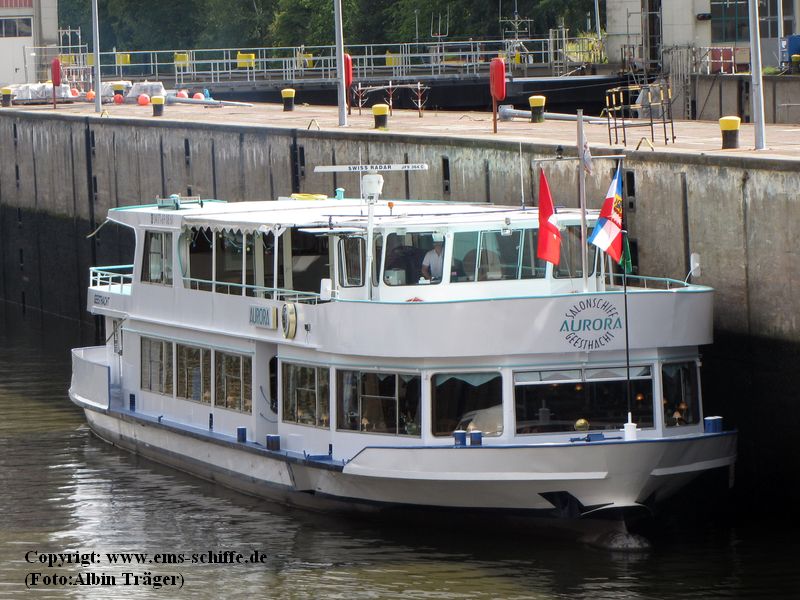 fgs AURORA in der Schleuse Geesthacht im September 2009. Das Schiff wurde 2000 zum Zweideck Schiff umgebaut und kann 215 Passagiere befördern. | ![]() | |