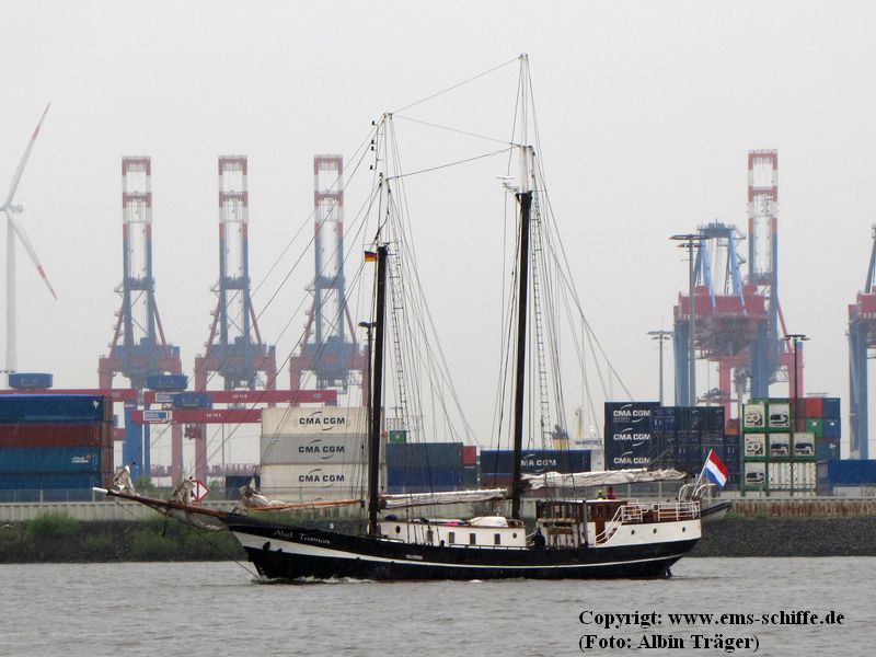 Der Schoner ABEL TASMAN in Hamburg. 1913 wurde er als Frachtschoner für Kapitän W. Engellandt in Breiholz gebaut. | ![]() | |