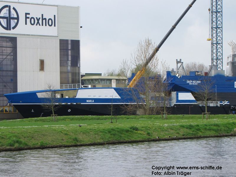 ms MARLA auf der Werft in Foxhol. Das kasko wurde bei Pattje SY in Waterhuizen gebaut. | ![]() | |