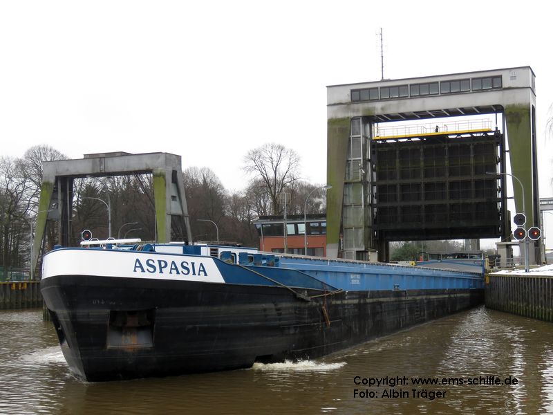 ms ASPASIA auslaufend Schleuse Herbrum. Das Schiff kann 90 TEU stauen. | ![]() | |