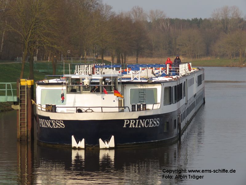 ms PRINCESS (98 Passagiere) aus Maasbracht an der Schleuse Bollingerfähr (1+2) bzw. in Herbrum zu Tal (3+4) | ![]() | |
