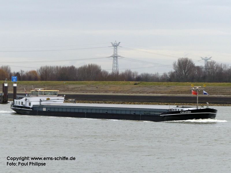 gms CALANDO auf dem Kanal durch Zuid-Beveland bei Hansweert. Das Schiff kann 144 TEU stauen. | ![]() | |