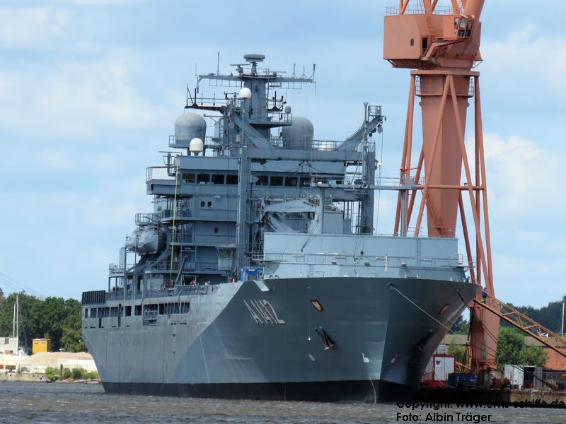 Der Einsatzgruppenversorger ms FRANKFURT AM MAIN (1412) im Juli 2015 in Emden. | ![]() | |