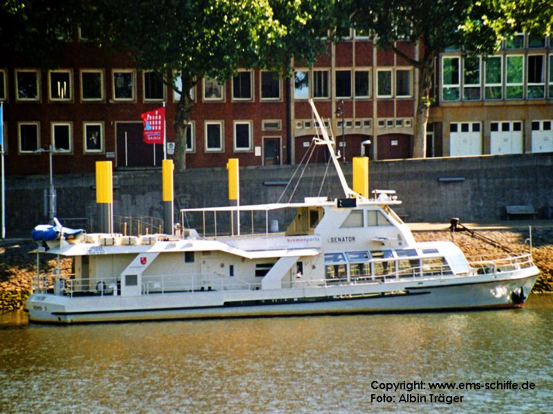 ms SENATOR die ehemalige Senatsbarkasse der Hansestadt Bremen an der Schlacht. Das Schiff befördert nun 38 Passagiere bei Charterfahrten. | ![]() | |