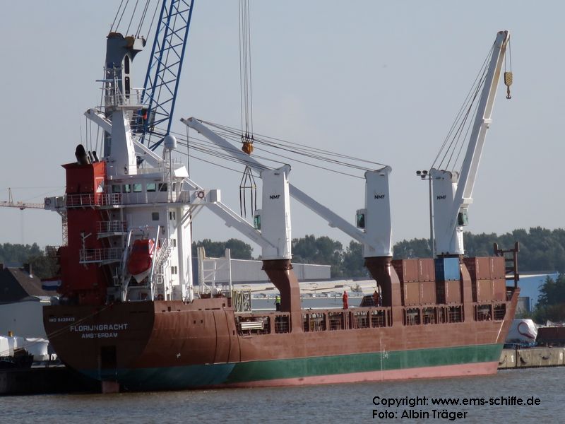 ms FLORIJNGRACHT der Reederei Spliethoff in Emden. Das Schiff verfügt über 3 NMF-Kräne á 80 t