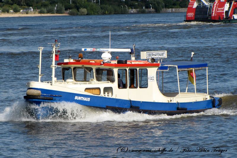 Barkasse BUNTHAUS des Oberhafenamtes Hamburg im Einsatz.
