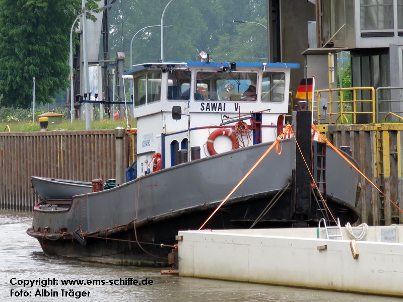 Das Schubboot SAWAI V auslaufend Schleuse Herbrum im Mai 2016