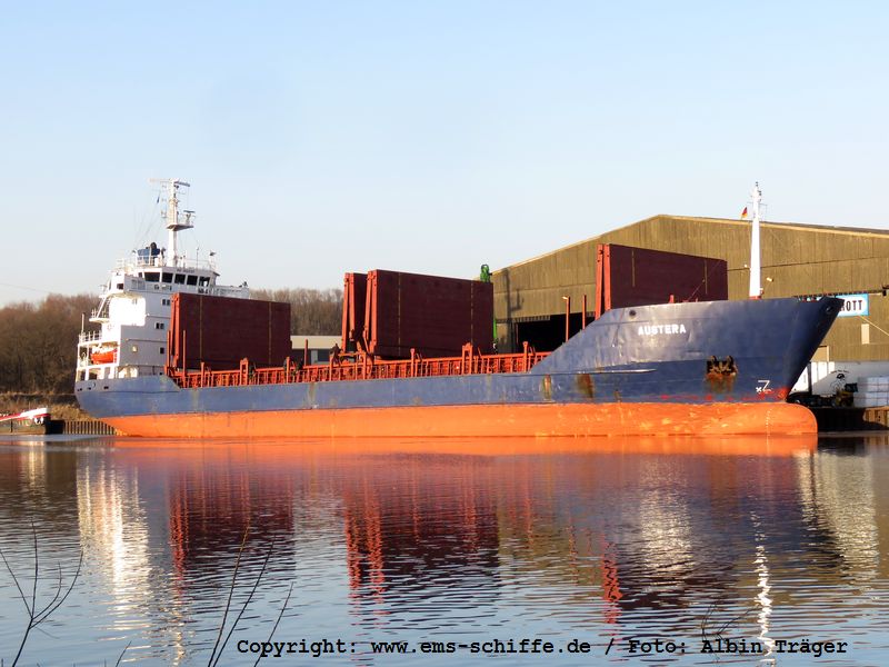ms AUSTERA ein Sietas Typ 96c Schiff in Papenburg am 15.02.2017. Das Schiff kann 263 TEU stauen und wird von einem 2650 kW starken Deutz Diesel angetrieben. | ![]() | |