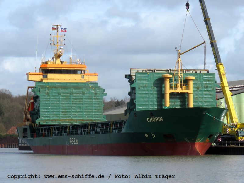 ms CHOPIN in Papenburg im März 2017. Das Schiff kann 310 TEU stauen. Verbleib: 2017 ADRIATA (PRT) | ![]() | |