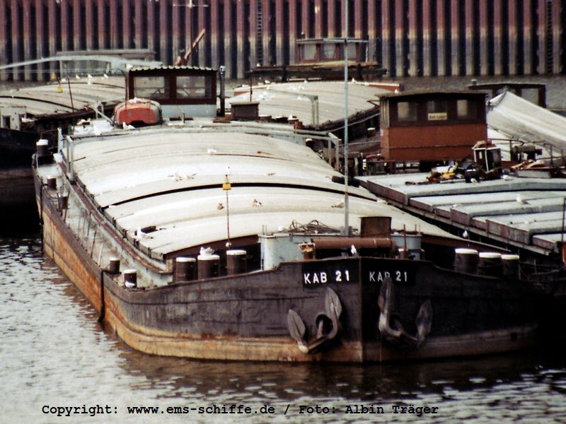 Das Schleppfrachtschiff KAB 21 in Bremen im August 2005 im Getreidehafen mit einigen anderen Schleppschiffen der Reederei Kurt A. Becher. | ![]() | |