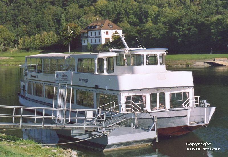 ms BRISSAGO am 16.Oktober 2006 in Bodenwerder. Das Schiff verfügt über eine Bugrampe und kann ca. 300 Passagiere transportieren. | ![]() | |