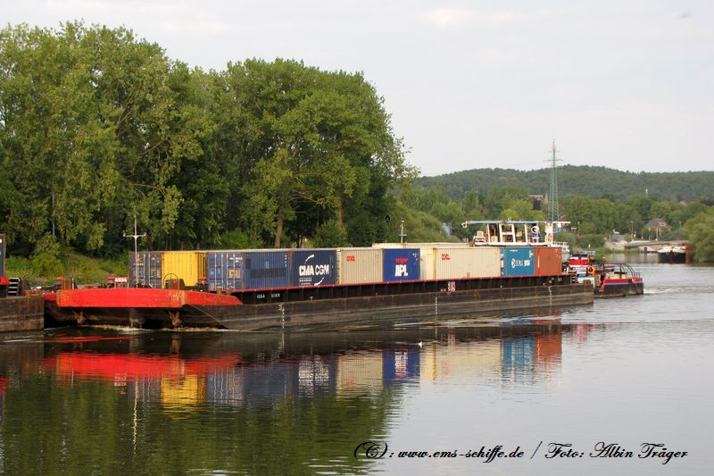Der Prahm 4534 der DBR geschoben von SCH 2637 auf der Elbe bei Geesthacht im August 2009 | ![]() | |