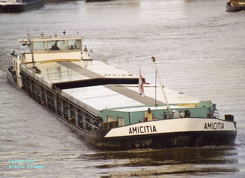 ms AMICITIA an der Schleuse in Herbrum im Januar 2006 (1) und talwärts an der "Leher Pünte" (2) | ![]() | |