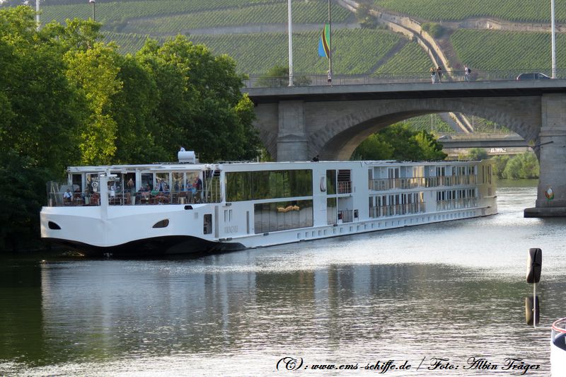 Der Kreuzfahrer ms VIKING ALSVIN auf dem Main in Würzburg. * die 4 AEM E-Motoren werden durch 2 CAT Diesel vom Typ C32 mit je 1137 kW angetrieben. | ![]() | |